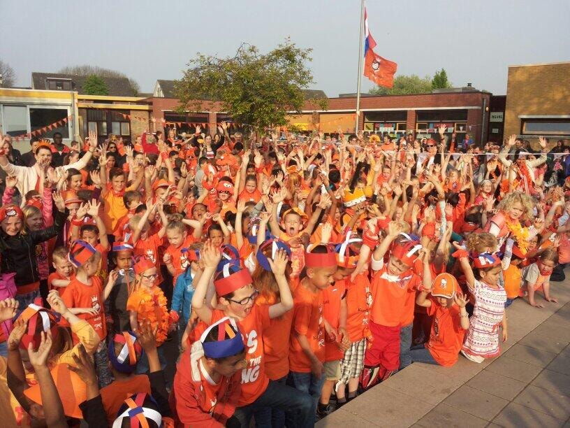 De leerlingen startten in de klas waar een lekker Koningsontbijt geserveerd werd. Daarna deden zoveel mogelijk deelnemers mee aan de landelijke wereldrecordpoging om de spieren op te warmen op het vrolijke liedje ‘Doe de Kanga’.
