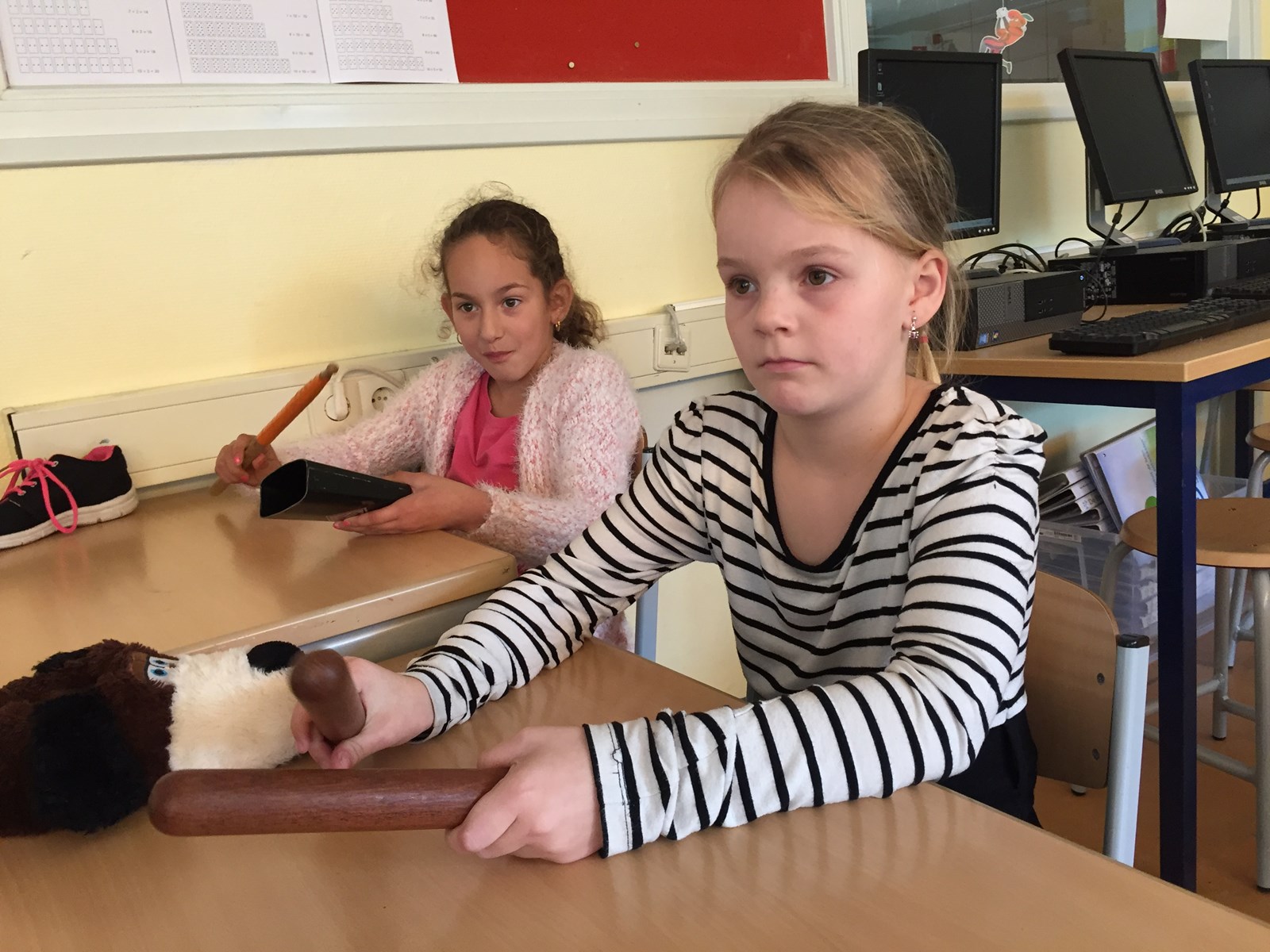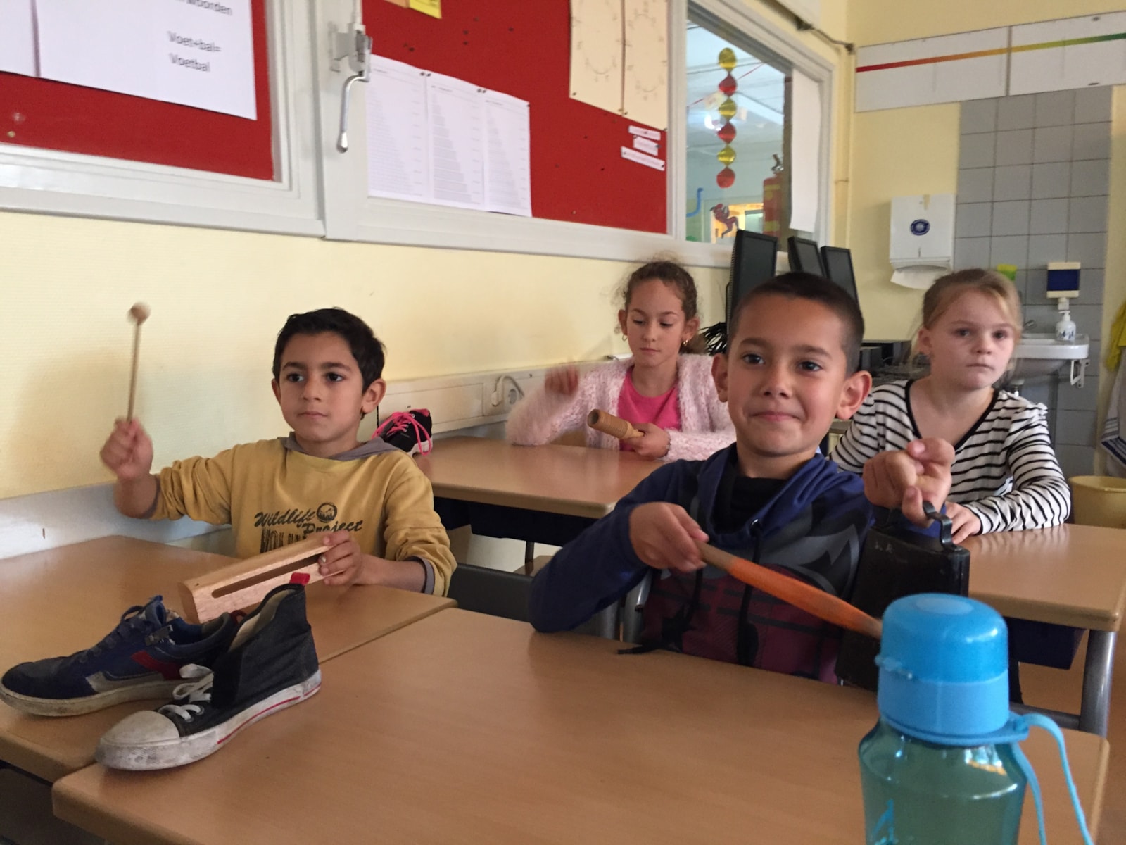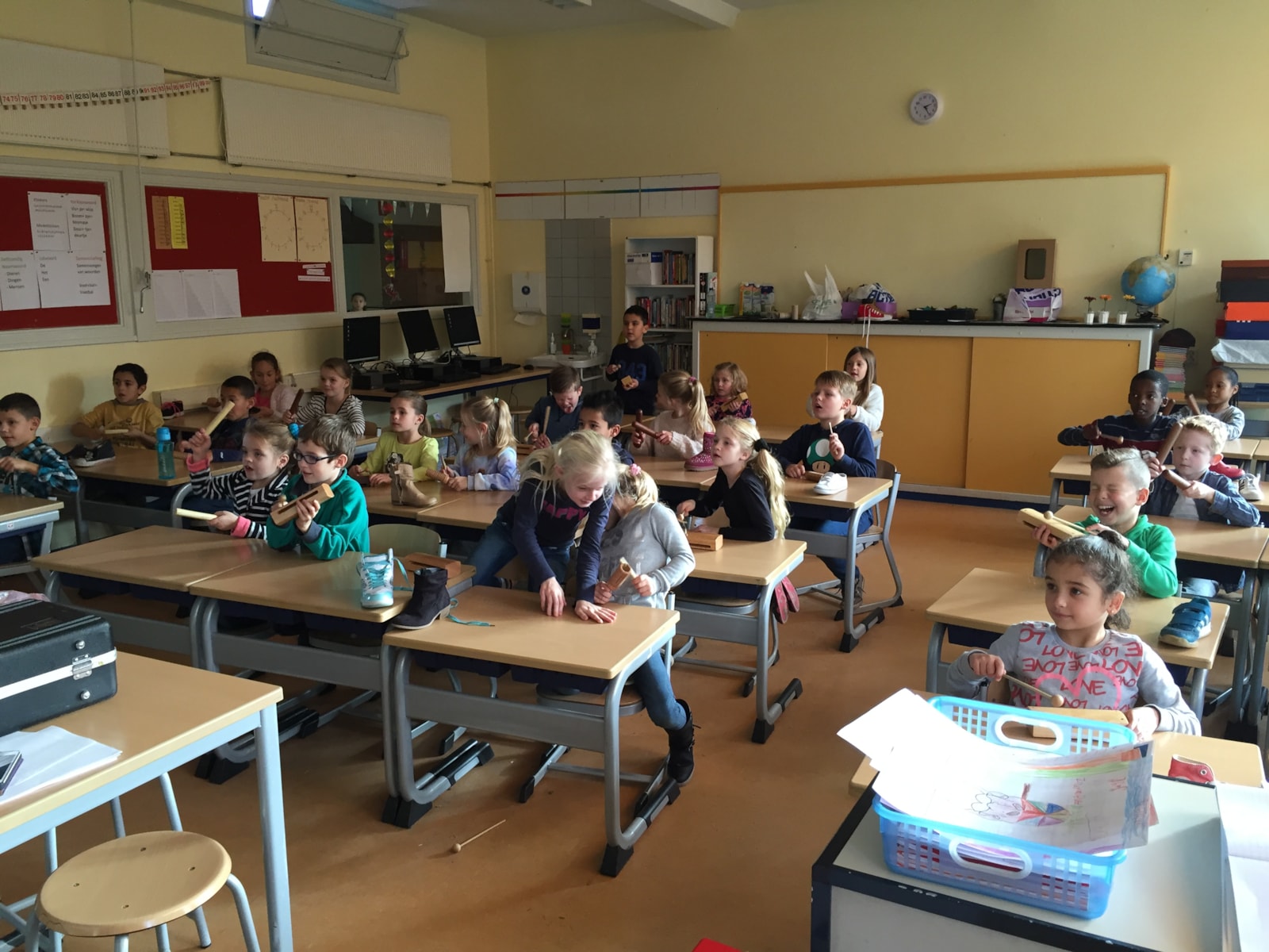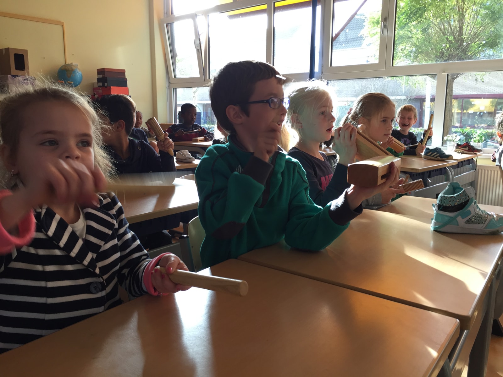 We hebben met heel groep 4 een super leuke muziek les gevolgd van showband jong holland. Tijdens de les hebben de kinderen de basiskennis geleerd van de noten en het klappen volgens een maat. Ook zijn we met verschillende muziekinstrumenten gaan de gang gegaan. (zie foto’s) Alle kinderen hebben een keertje op een trompet mogen blazen. En lastig dat dit was.