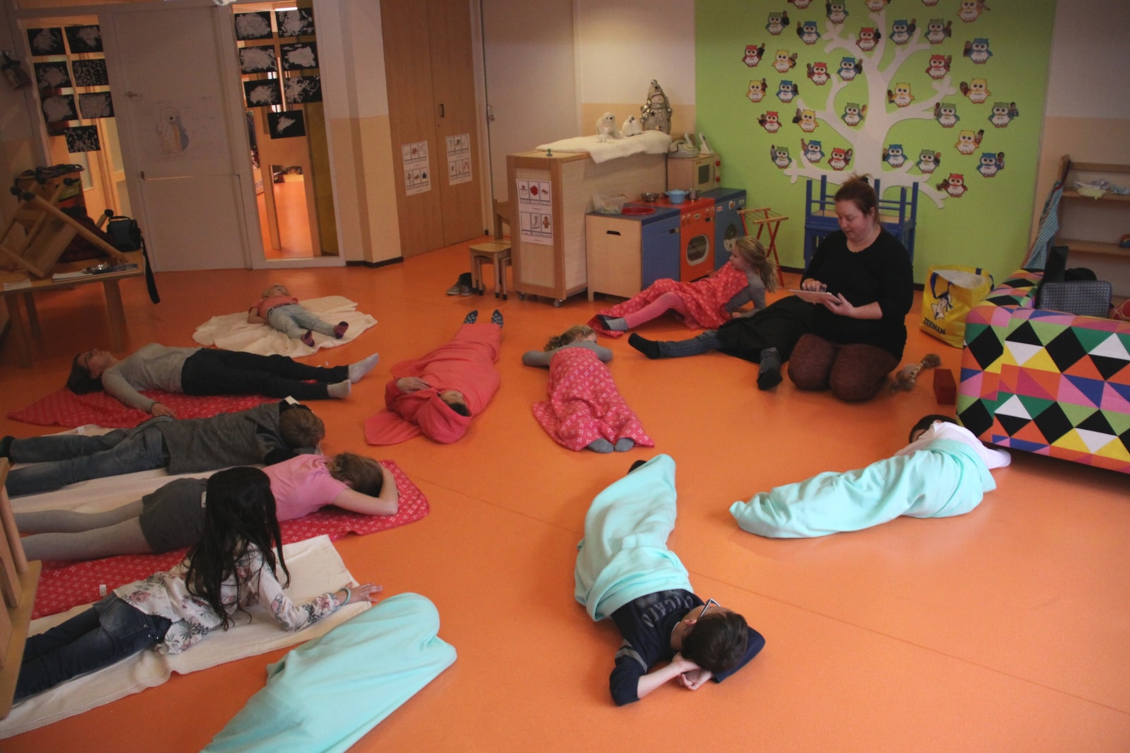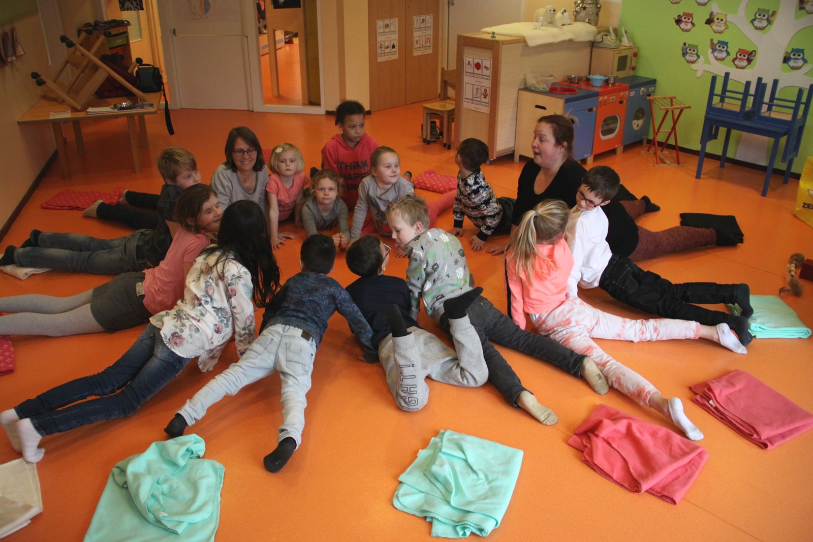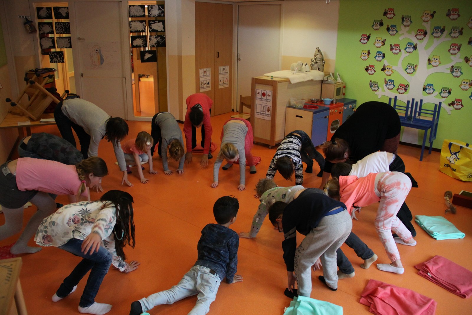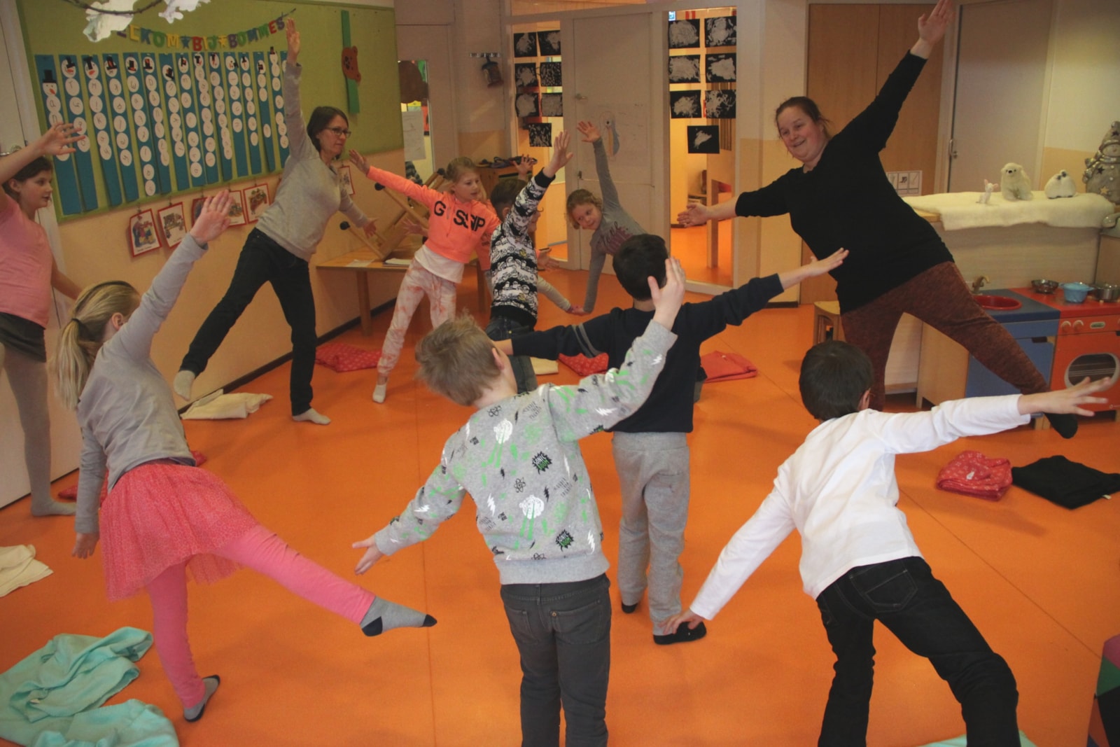 Kindcentrum Dribbel biedt kinderopvang voor kinderen van 0 tot 13 jaar en is een van de 19 kindcentra van PIT kinderopvang & onderwijs. Een van de bijzondere activiteiten deze maand zijn de dans- en ontspanningslessen. Deze worden verzorgd door Dymphna Sturrus van Theaterhuis Drechtsteden die op speelse wijze aandacht besteedt aan ademhalen, inspannen en ontspannen. “We krijgen allemaal een eigen kleed. We rekken ons uit, spelen dat we een ballon opblazen en laten leeglopen in onze buik, dansen en doen de bewegingen van dieren na. Nee, spierpijn heb ik er niet van. Aan het eind gaan we slapen. Dymphna vertelt een verhaal dat we in ons hoofd moeten naspelen. Ze zegt dat dat goed is voor je fantasie en ik word er helemaal slaperig van. Ik wil dit het hele jaar wel doen,” aldus een enthousiaste Yerne.