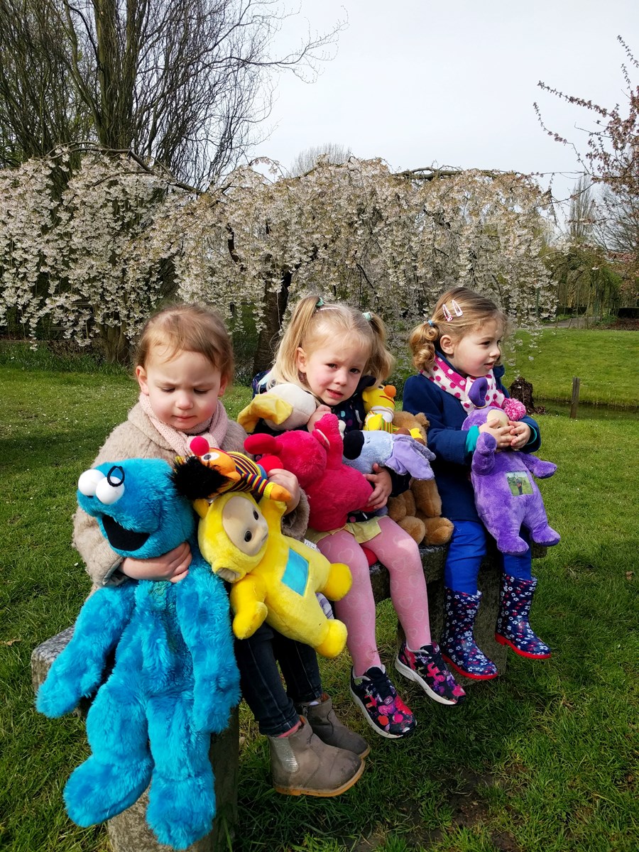 De peuters van kinderdagverblijf De Rakkers van PIT kinderopvang & onderwijs hebben een knuffelspeurtocht gedaan bij ’t Weetpunt. Bert, Ernie, de Teletubbies, Koekiemonster, Woezel, Pip en nog veel meer andere bekende troeteldieren waren door natuurgids Lidy van der Lans en haar assistente tussen het groen en de bloemen verstopt. Was er een knuffel gevonden, dan kregen de kinderen een opdracht. Ze vulden een tas met dennenappels, ontdekten figuren in de wolken, voerden de eendjes wat brood, roken aan kruiden en mochten die zelfs plukken.