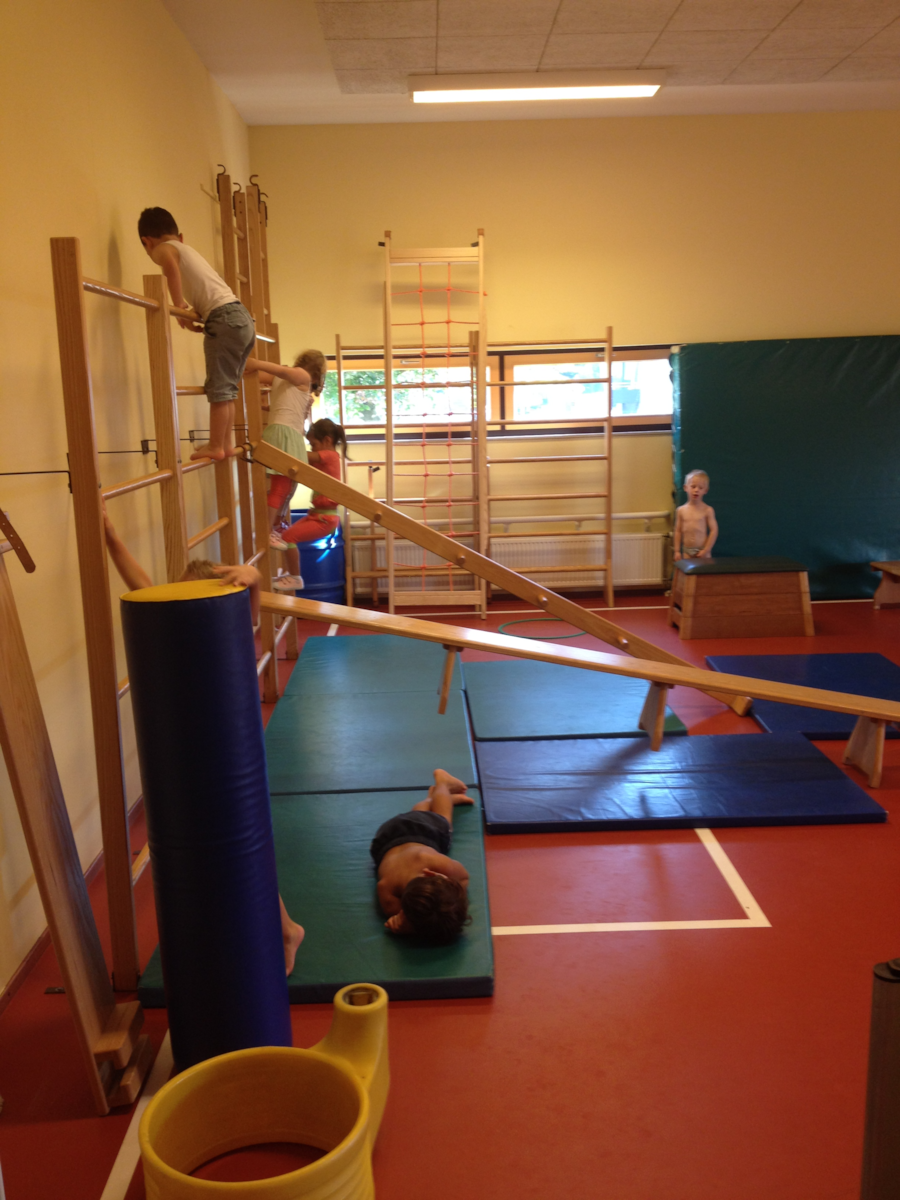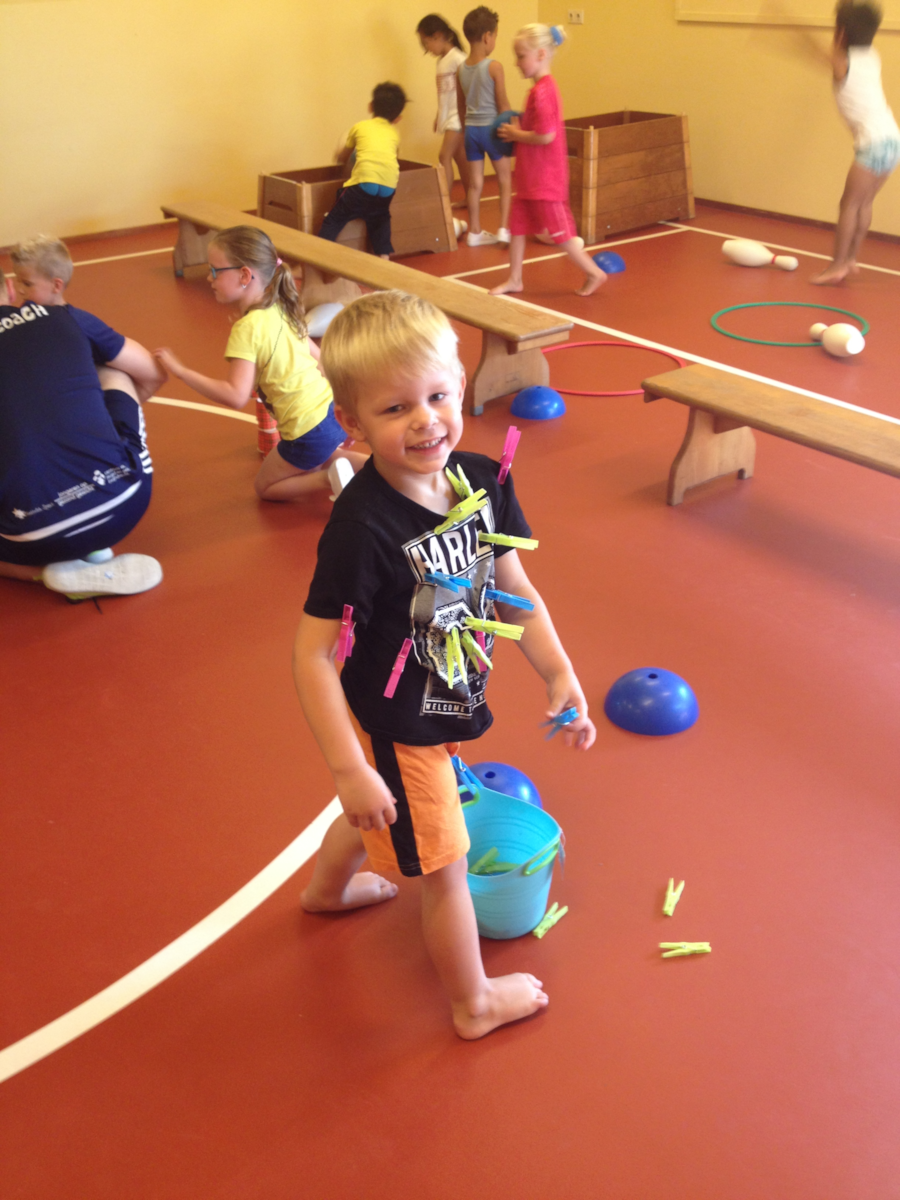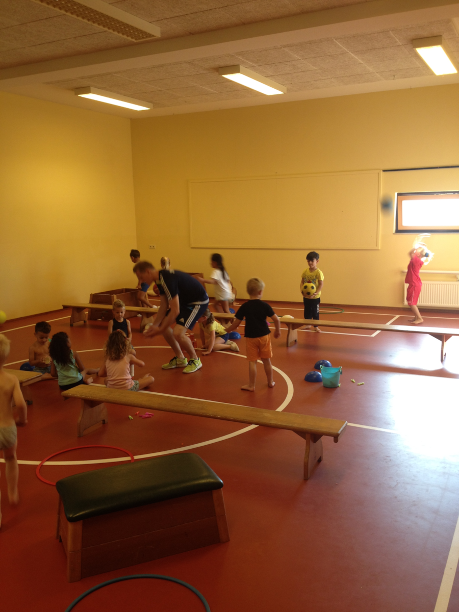 Deze week en de aankomende weken krijgen de kleuters gymles van meester Maarten van Toppie Sport. Hij verdeelt de gymzaal in verschillende tuintjes (net zoals wij dit doen, alleen met andere materialen) zodat alle kinderen tegelijk bezig zijn. Hier kunt u enkele foto’s bekijken van de tweede les.