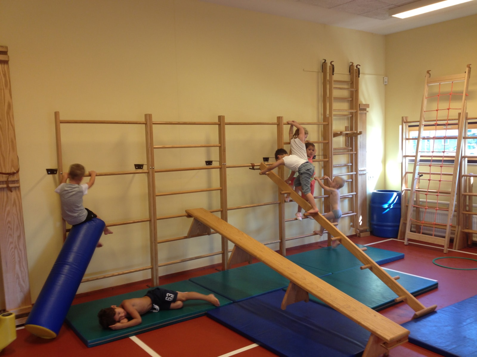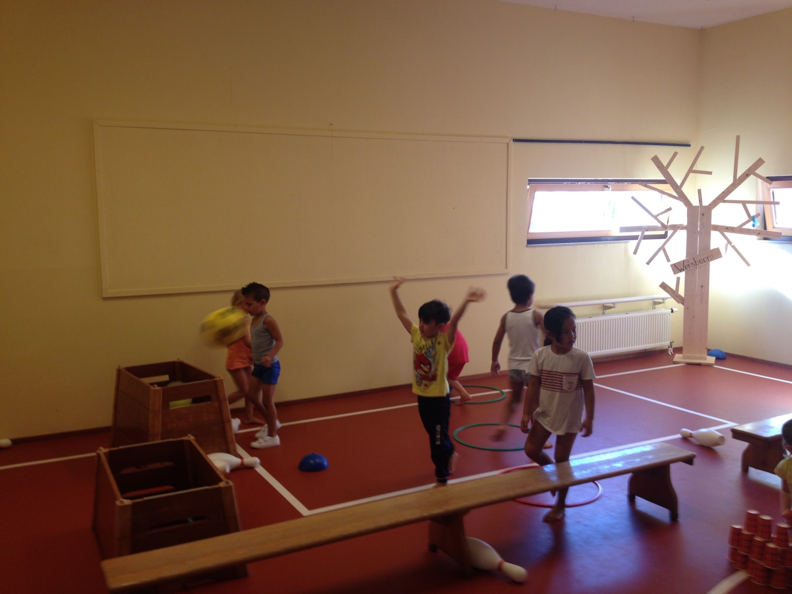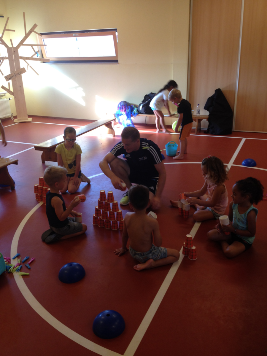Deze week en de aankomende weken krijgen de kleuters gymles van meester Maarten van Toppie Sport. Hij verdeelt de gymzaal in verschillende tuintjes (net zoals wij dit doen, alleen met andere materialen) zodat alle kinderen tegelijk bezig zijn. Hier kunt u enkele foto’s bekijken van de tweede les.