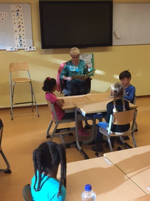 In de klas hebben wij bezoek gehad van de oma van Stijn en de oma van Iris. Zij hebben een boek voorgelezen in de klas.