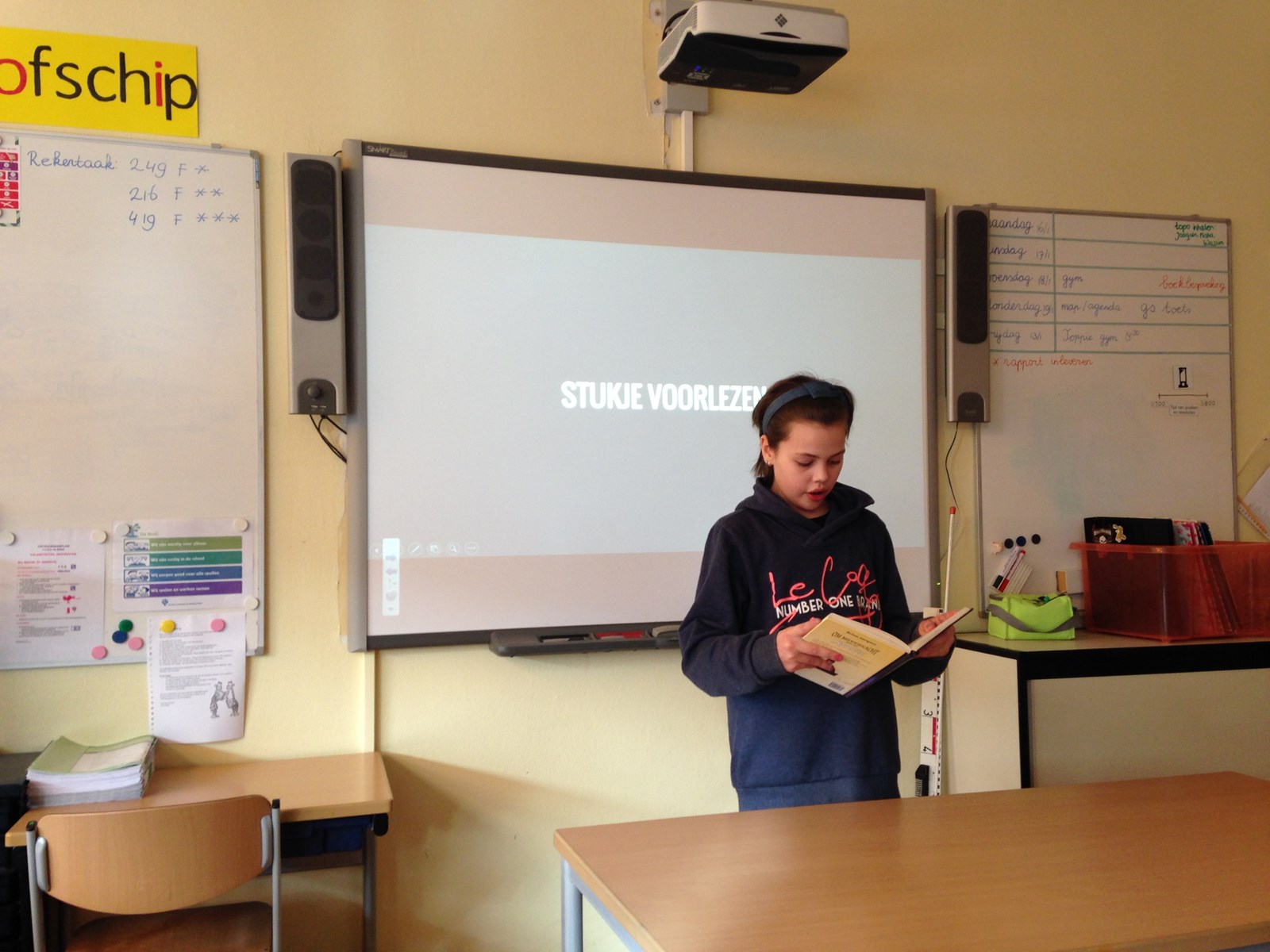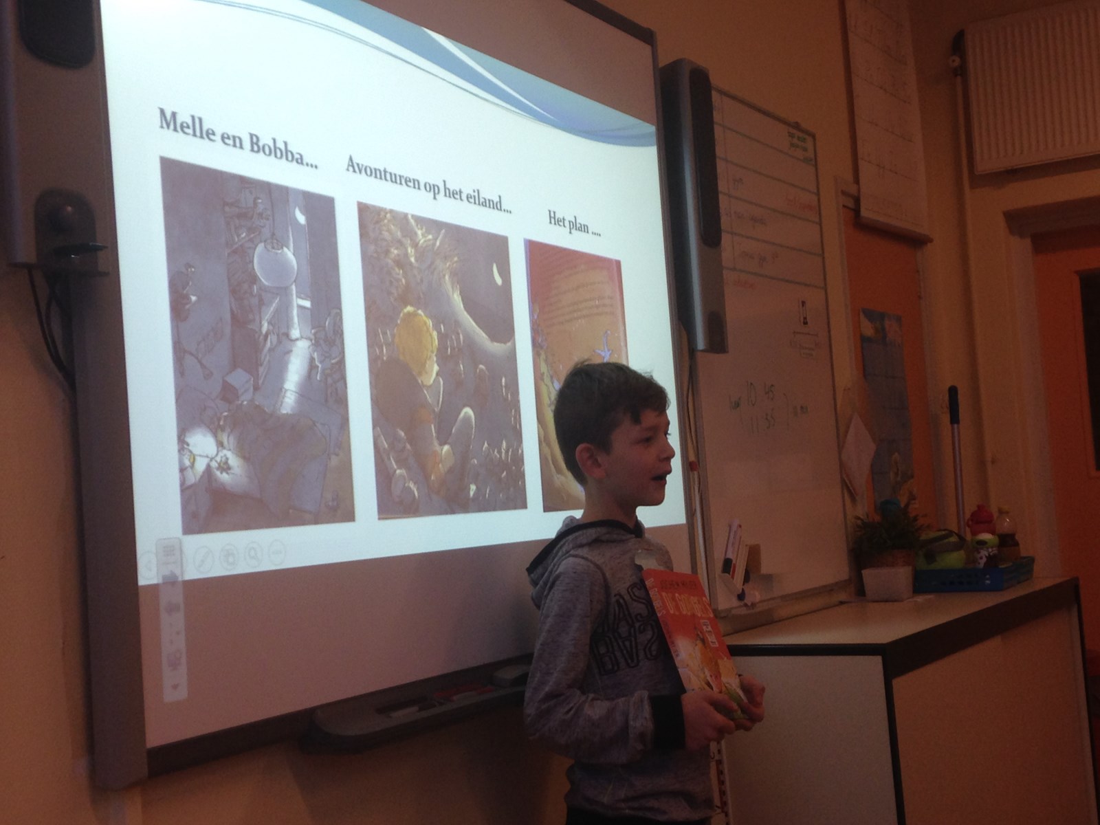 Als eerste zijn Jady en Joaquin aan de beurt geweest. We hebben geleerd wat er allemaal in een boekbespreking verteld moet worden: