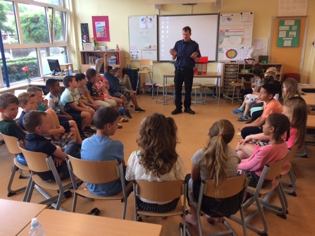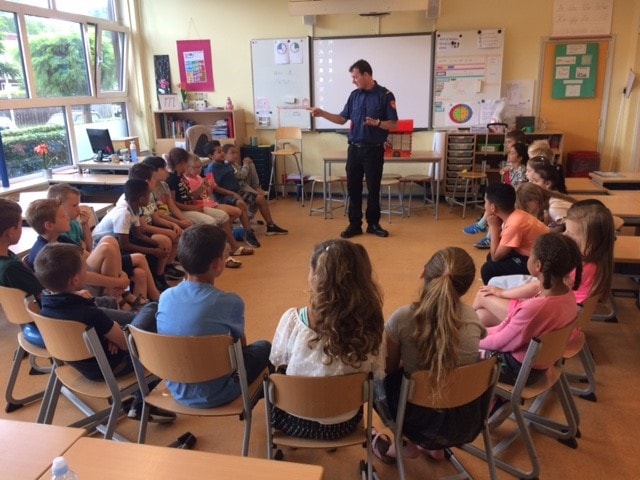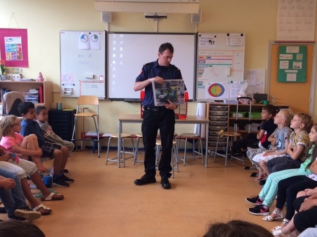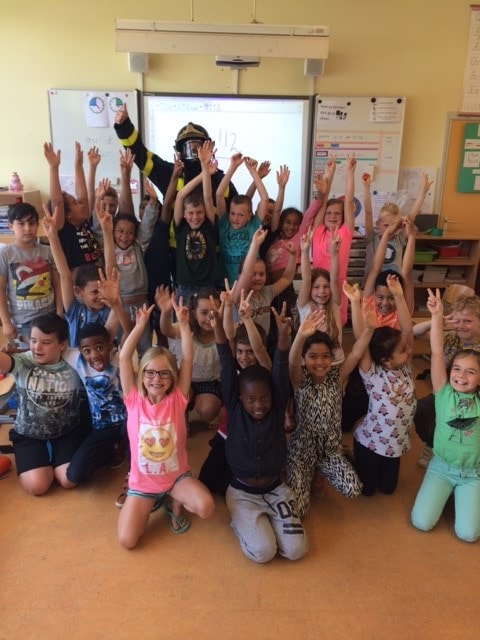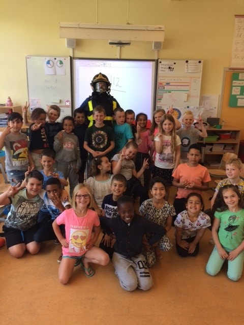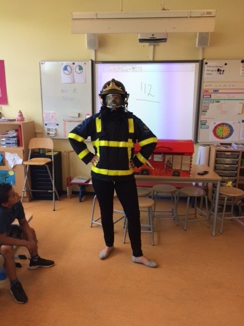 Brandmeester Marien op bezoek in groep 4.
