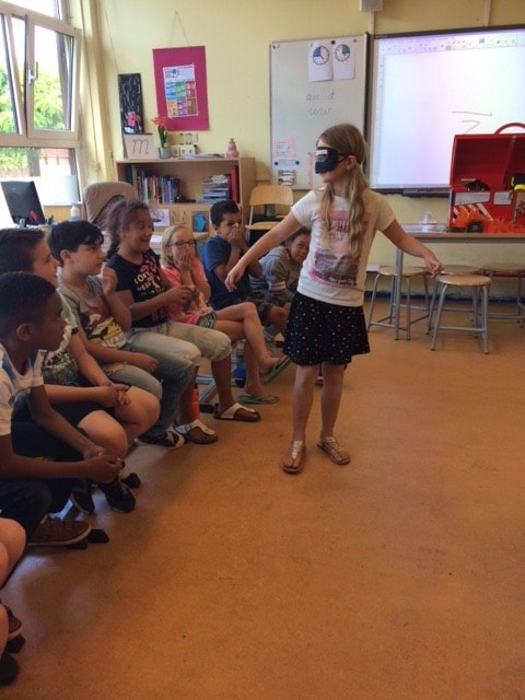 Lotte: Ik vond het leuk dat ik met een blinddoek naar de deur moest en ik moest iedere keer lachen omdat ik telkens tegen iemand aanstootte.
