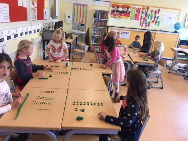 In groep 4/5 is aan het oefenen met de tafelsommen op een andere manier aan bod gekomen. We zijn er achter gekomen dat je de tafels zelfs kunt kleien.