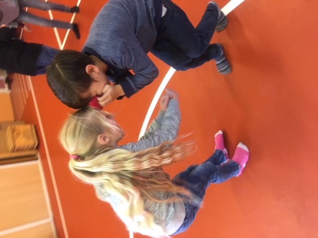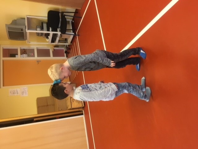 Vorige week hebben wij een les kanjertraining gedaan in het speellokaal. De leerlingen moesten met pittenzakjes tussen hun hoofd elkaar de weg wijzen.