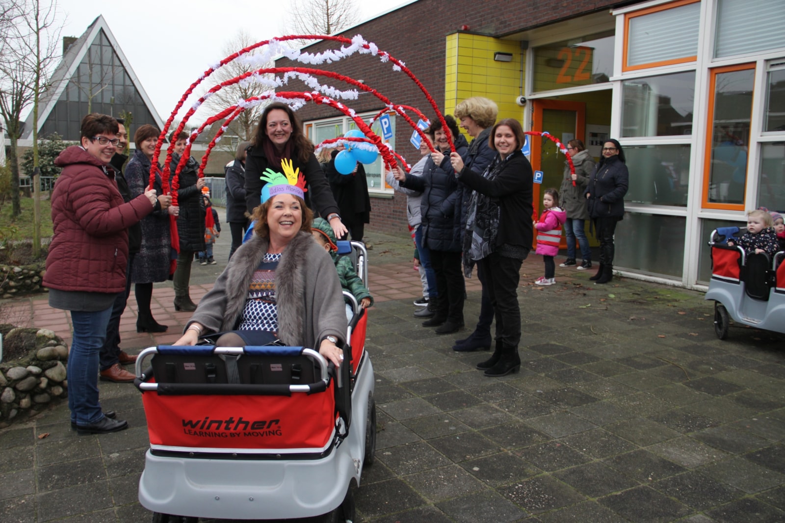 Eerder in de middag had Monique Fluitsma onder luid gejuich van de dreumesen, peuters en pedagogisch medewerkers van kindcentrum De Rakkers en collega’s van het bestuurskantoor - beide gevestigd aan de Dr. Plesmanstraat in Zwijndrecht - het straatnaambord van het grote speelontdekplein onthuld dat vanaf nu haar naam draagt. Aansluitend was er een afscheidsreceptie in Cultureel Centrum Cascade in Hendrik-Ido-Ambacht voor collega’s, ouders, leden van de kindcentrumraden, de PIT-raad en de raad van toezicht en relaties.
