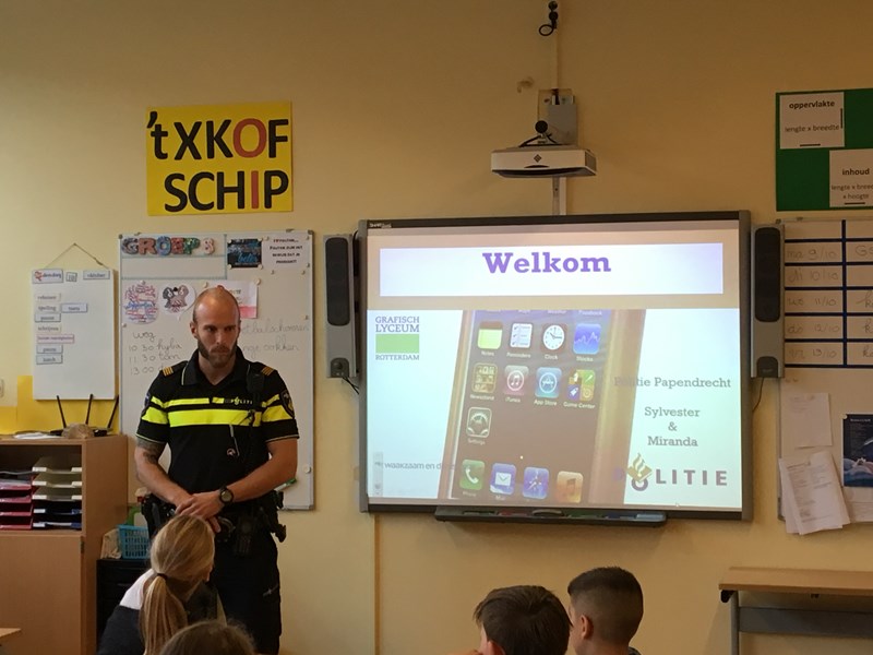 In groep 8 hebben ze dinsdagmiddag 10 oktober bezoek gehad van de politie. De politie heeft verteld over de veiligheid van de telefoon en waar je op moet letten. Wat doe je als je telefoon wordt gestolen? Wat is grooming?
